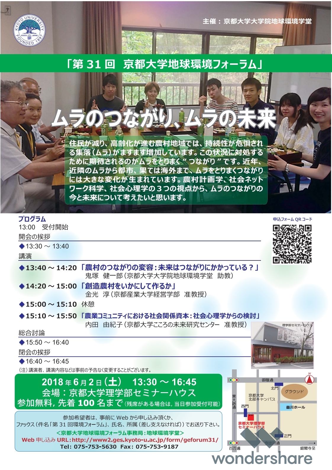定員 先着100名まで(残席がある場合は、当日参加受け付け可能)